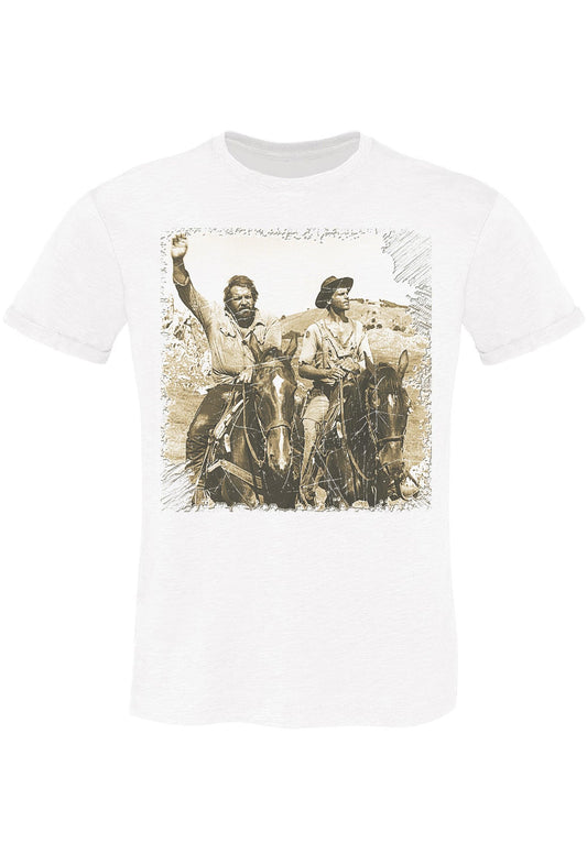 Bud Spencere e Terence Hill The Legend Sul Cavallo Art. 18-70-4 T-Shirt Urban Men Uomo 100% Cotone Fiammato BS