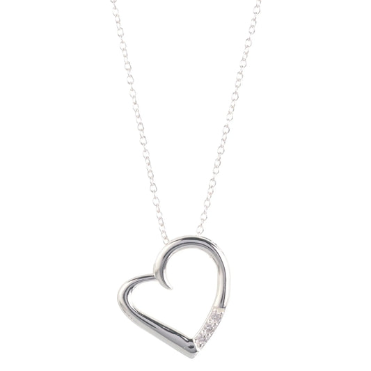 14K Silver Plated Necklace Love Heart Pave Pendant Necklace