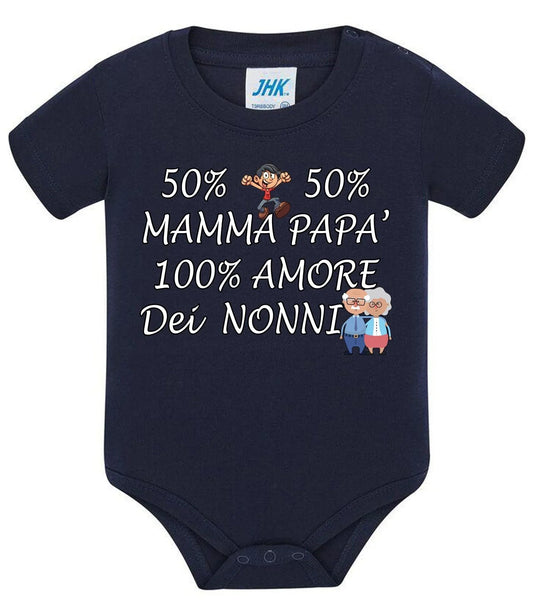 50% Mom 50% Dad 100% Grandparents' Love Baby/Girl Short Sleeve Bodysuit 100% Cotton JHK