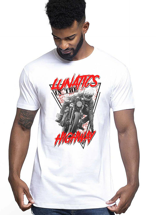 Lunatics in the HigWay Auto Moto e Bici 161-2019-2 T-shirt Urban Men Men 100% Combed Cotton JK