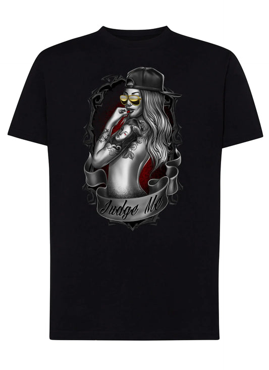 Girl Skull Motor Tattoo 9060 T-shirt Urban Men 100% Combed Cotton JK