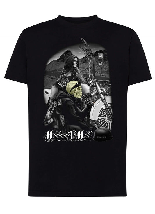 Highway To Hell Skull Motor Tattoo 9050-24 Urban Men T-shirt 100% Combed Cotton JK