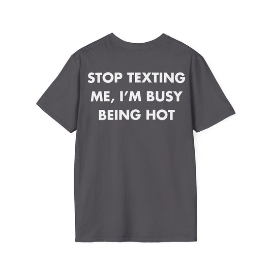 STOP TEXTING ME, I’M BUSY BEING HOT - Everything I Love - Unisex T-Shirt - Back Print