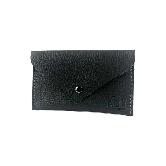 K0040AB | Bustina con pattina Made in Italy in Vera Pelle pieno fiore, grana dollaro - Colore Nero - Dimensioni: cm 13 x 8 x 0,5 - Confezione: Gift Box rigido fondo/coperchio