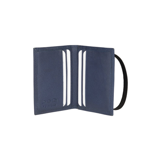 K10217DB | Credit Card Holder in Genuine Full Grain Leather, with light grain. Blue colour. Elastic closure. Dimensions when closed: 7 x 9.8 x 0.5 cm. Packaging: Rigid bottom/lid gift box
