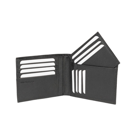 RB12106A | Portafogli Uomo in Vera Pelle pieno fiore, grana dollaro/leggera. Colore Nero. Protezione RFID. Dimensioni da chiuso: cm 12,5 x 9,5 x 2. Confezione: Scatola regalo fondo/coperchio