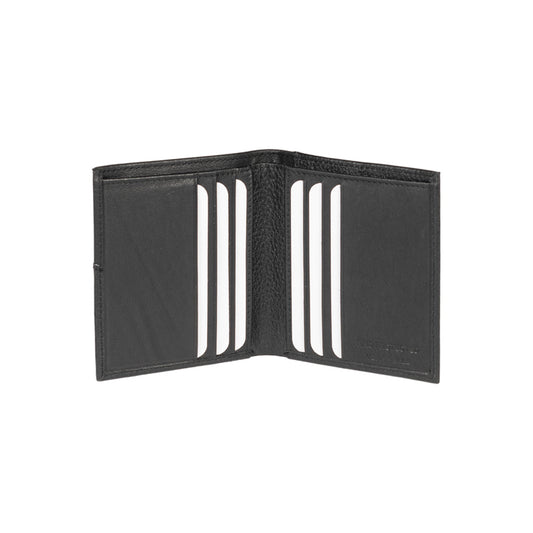 RB12113A | Vertical Wallet in Genuine Full Grain Leather, Dollar Grain/Light. Color Black. RFID Protection. Closed Dimensions: cm 9.5 x 10 x 1. Packaging: Gift box bottom/lid