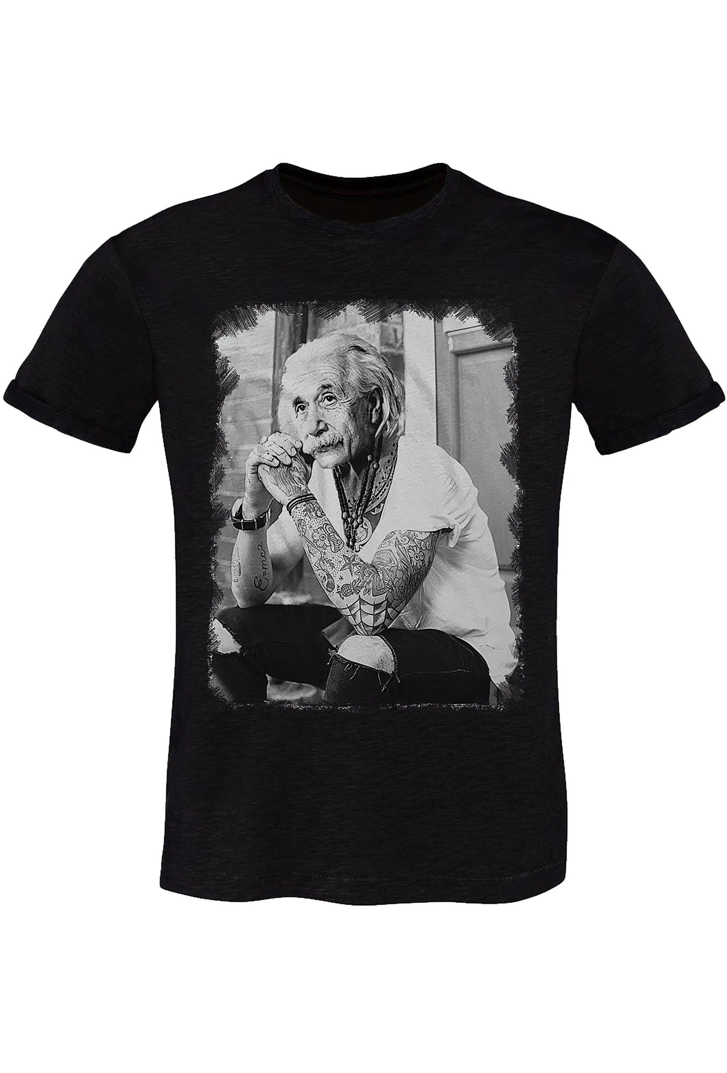 Genius Albert Einstein Tatuato Color & Grey 18-84 T-Shirt Urban Men Uomo 100% Cotone Fiammato BS