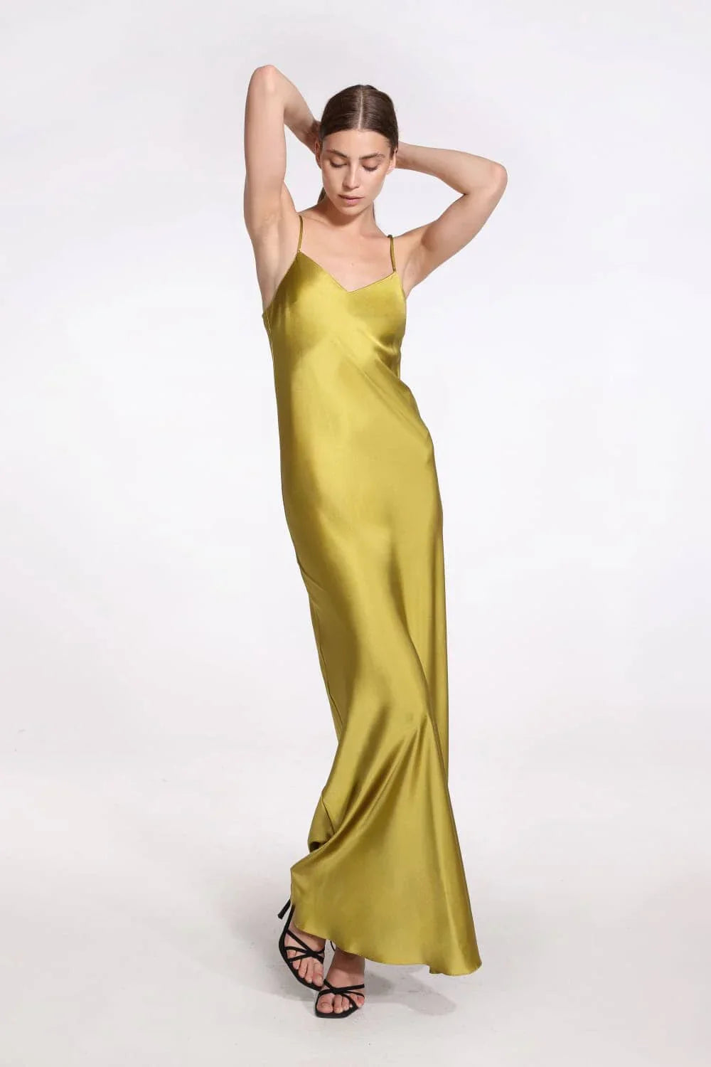 Sunlit and effortlessly light. The Meadow Slip is crafted from pure silk and cut on the bias to create a softly flowing silhouette that skims the body with elegant ease. Its vibrant lemon-yellow hue recalls a golden summer meadow—fresh, feminine, and quietly bold. Slim silk straps frame the shoulders, while the adjustable length lets you fine-tune the fit. Feather-light to wear and silky to the touch, it moves seamlessly from easy mornings to luminous evenings.
