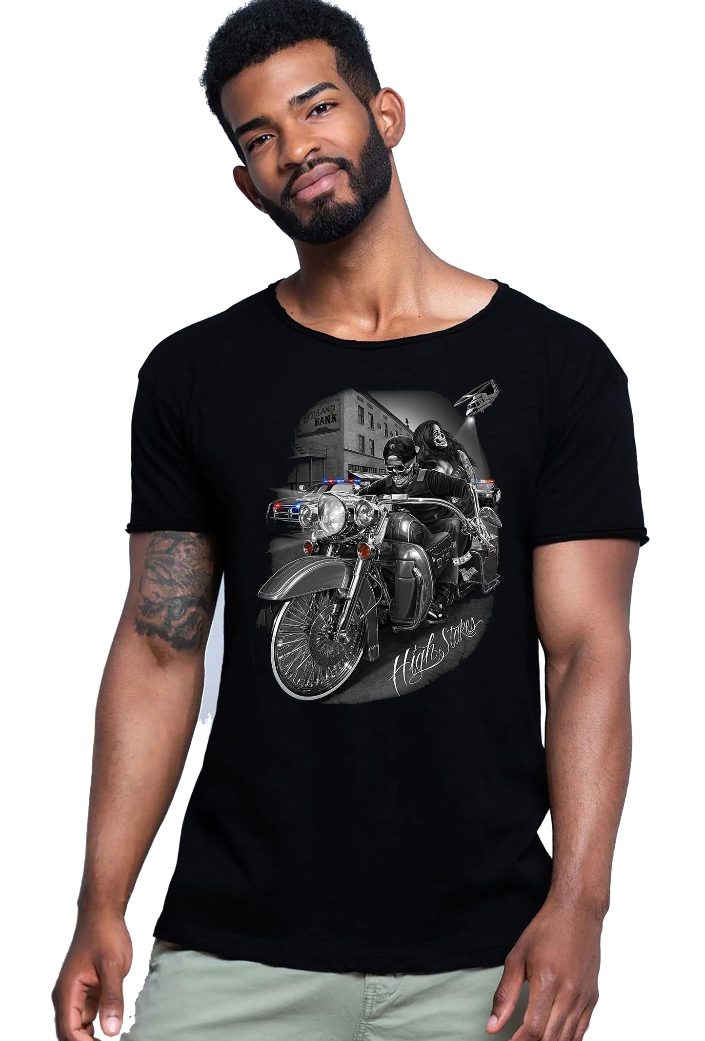 High Stares Tattoo Skull 9050-21 T-shirt Urban Slub Men Uomo 100% Cotone Fiammato JK
