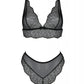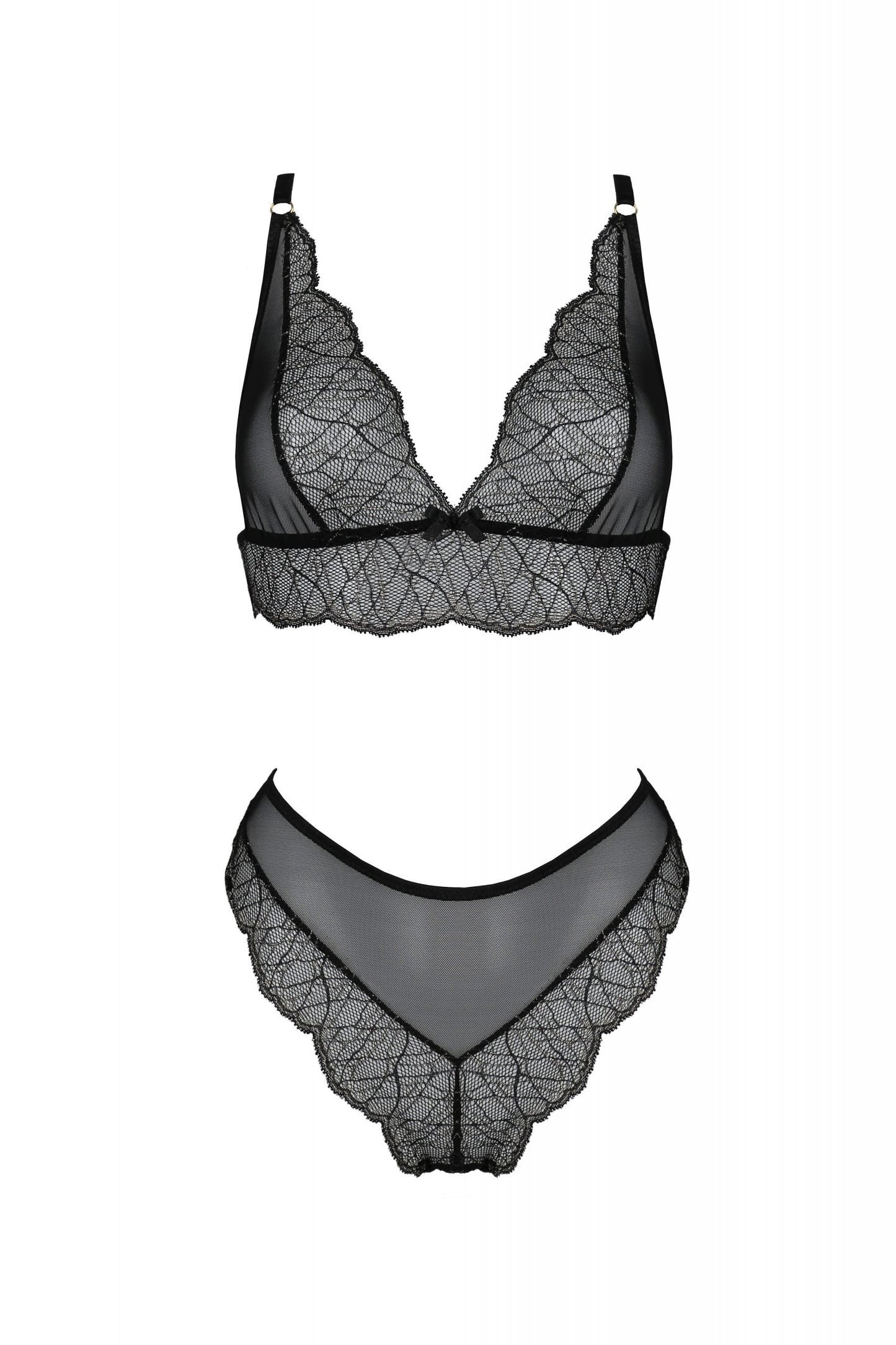 The Amberly Set is composed of a soft top and sheer bikini panty, both of which boast an elegant black color that exudes timeless charm.
