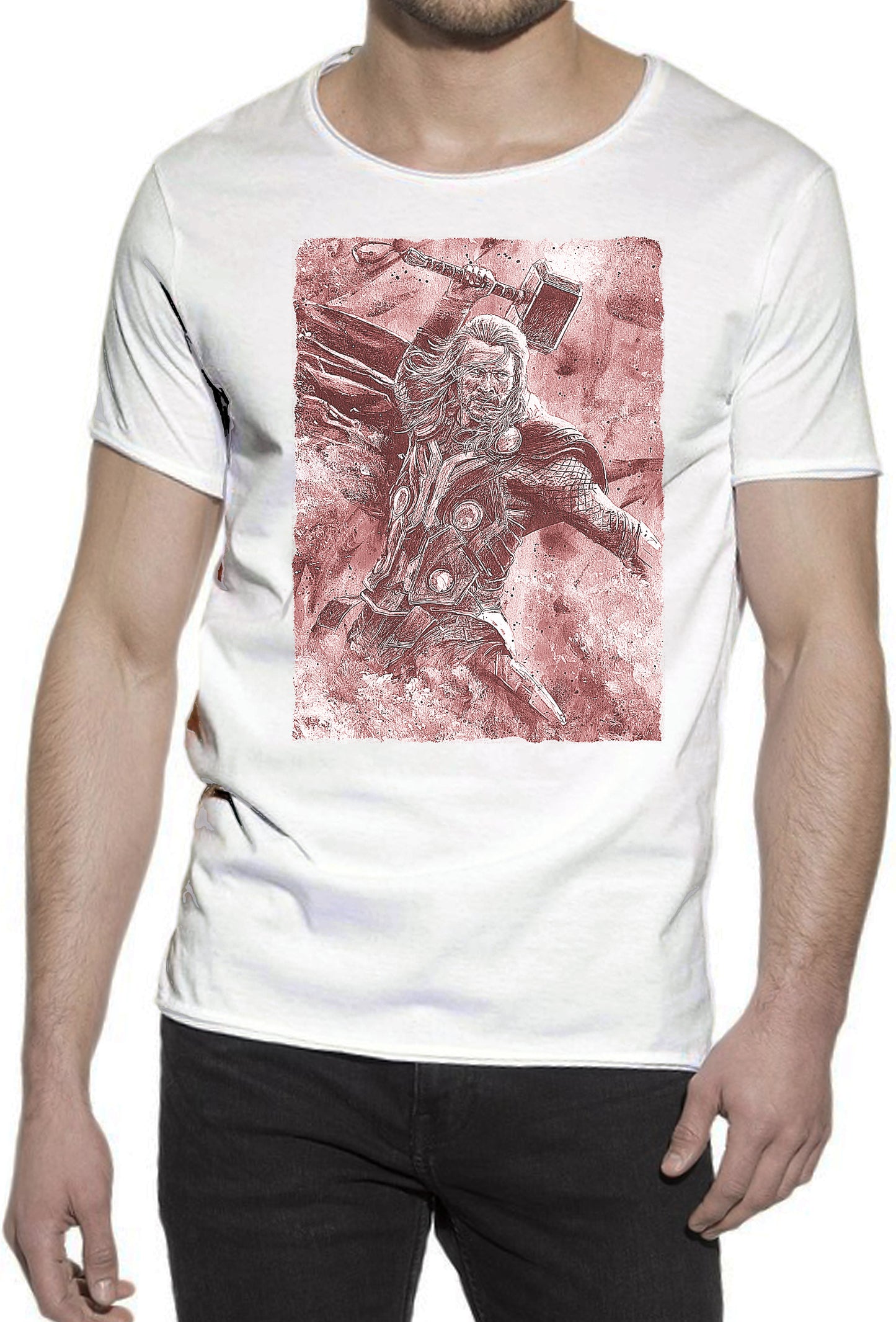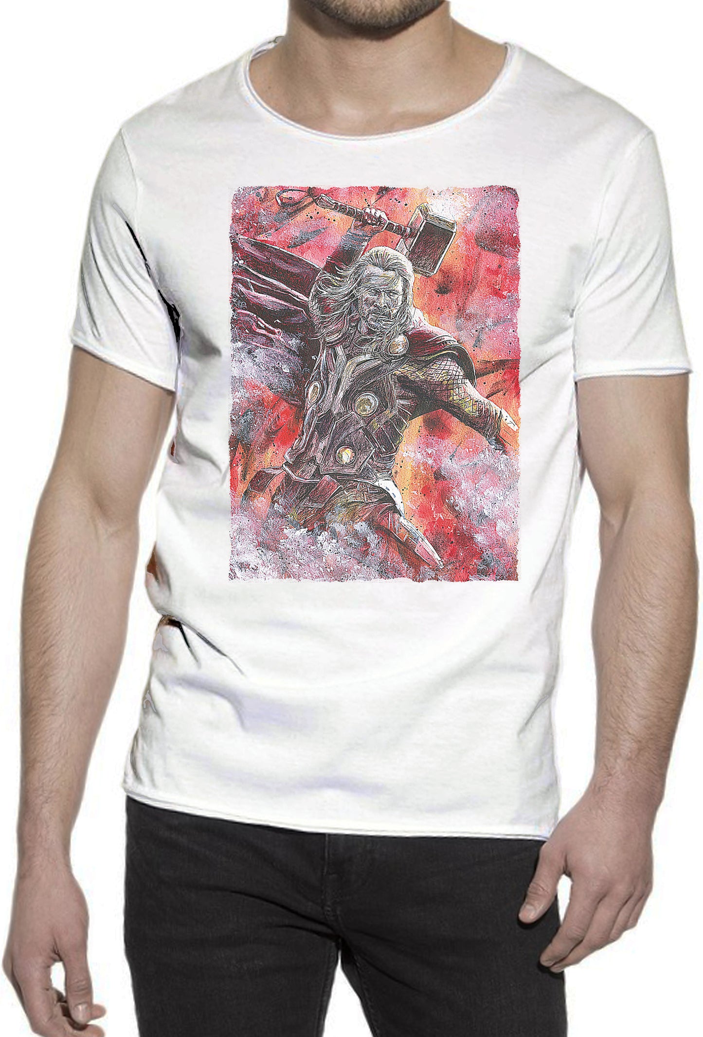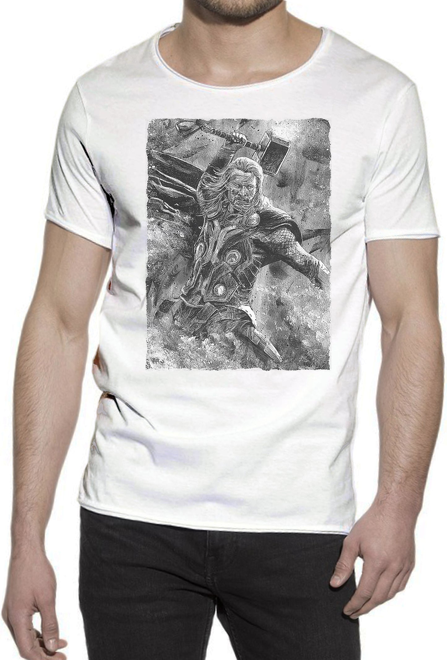 Share1.00Thor Scratc Super Eroi Fumetti 18-109 T-shirt Urban Slub Men Uomo 100% Cotone Fiammato JK