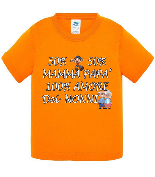 50% Mamma 50% Papà Amore dei Nonni - T-shirt per Bambino/a Mod. Baby & Kid Da 0 a 8 anni