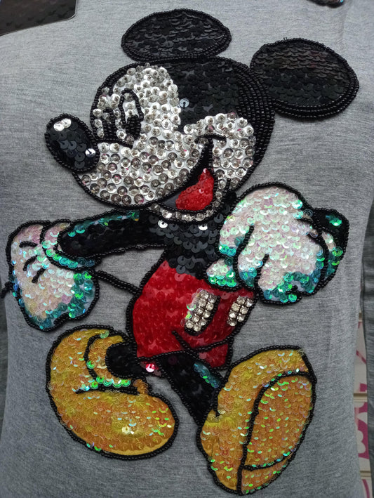 DT092TWW T-SHIRT TOPOLINO PAILETTES MANICHE LUNGE - DISNEY T-SHIRT DONNA
