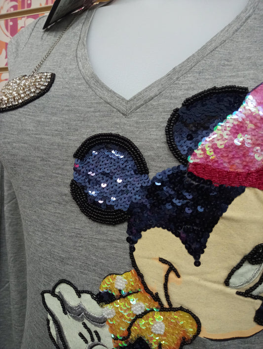 DM347TWW T-SHIRT MINNI PAILETTES MANICHE LUNGHE - DISNEY T-SHIRT DONNA