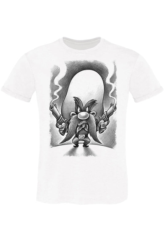 Yosemite Sam Pistoleros Fumetti Cartoons 2075-3-5 T-Shirt Urban Men Uomo 100% Cotone Fiammato BS