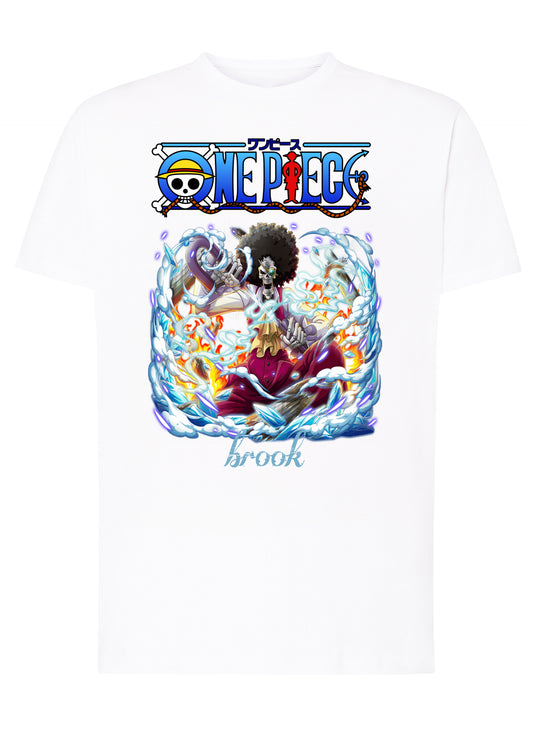 Of One Piece Brook Manga Anime Fumetti 6018-53 T-shirt Urban Men Uomo 100% Cotone Pettinato JK
