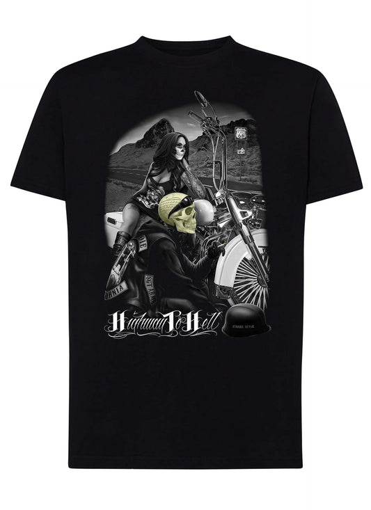 Highway To Hell Skull Motor Tattoo 9050-24 T-shirt Urban Men Uomo 100% Cotone Pettinato JK
