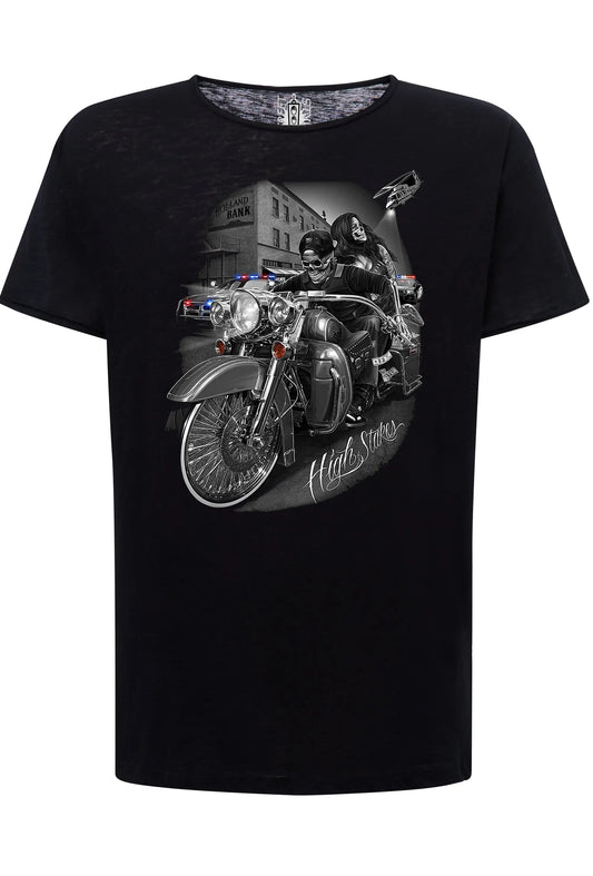 High Stares Tattoo Skull 9050-21 T-shirt Urban Slub Men Uomo 100% Cotone Fiammato JK