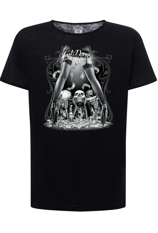 Last Dance Scuro Tattoo Skull 9032 T-shirt Urban Slub Men Uomo 100% Cotone Fiammato JK