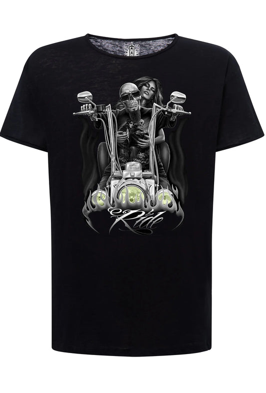Ride Ordie Tattoo Skull 9050-23 T-shirt Urban Slub Men Uomo 100% Cotone Fiammato JK