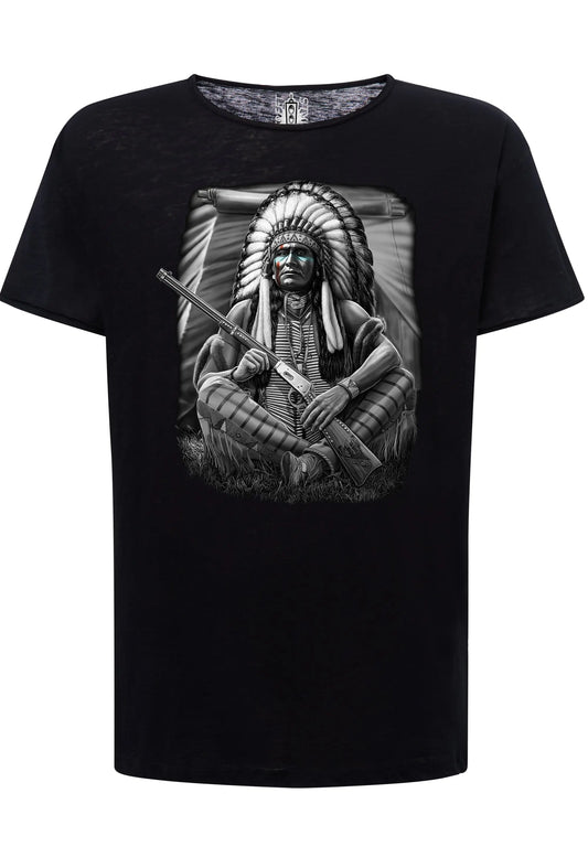 Teschio America Gold Tattoo 9072 T-shirt Urban Men Uomo 100% Cotone Pettinato JK