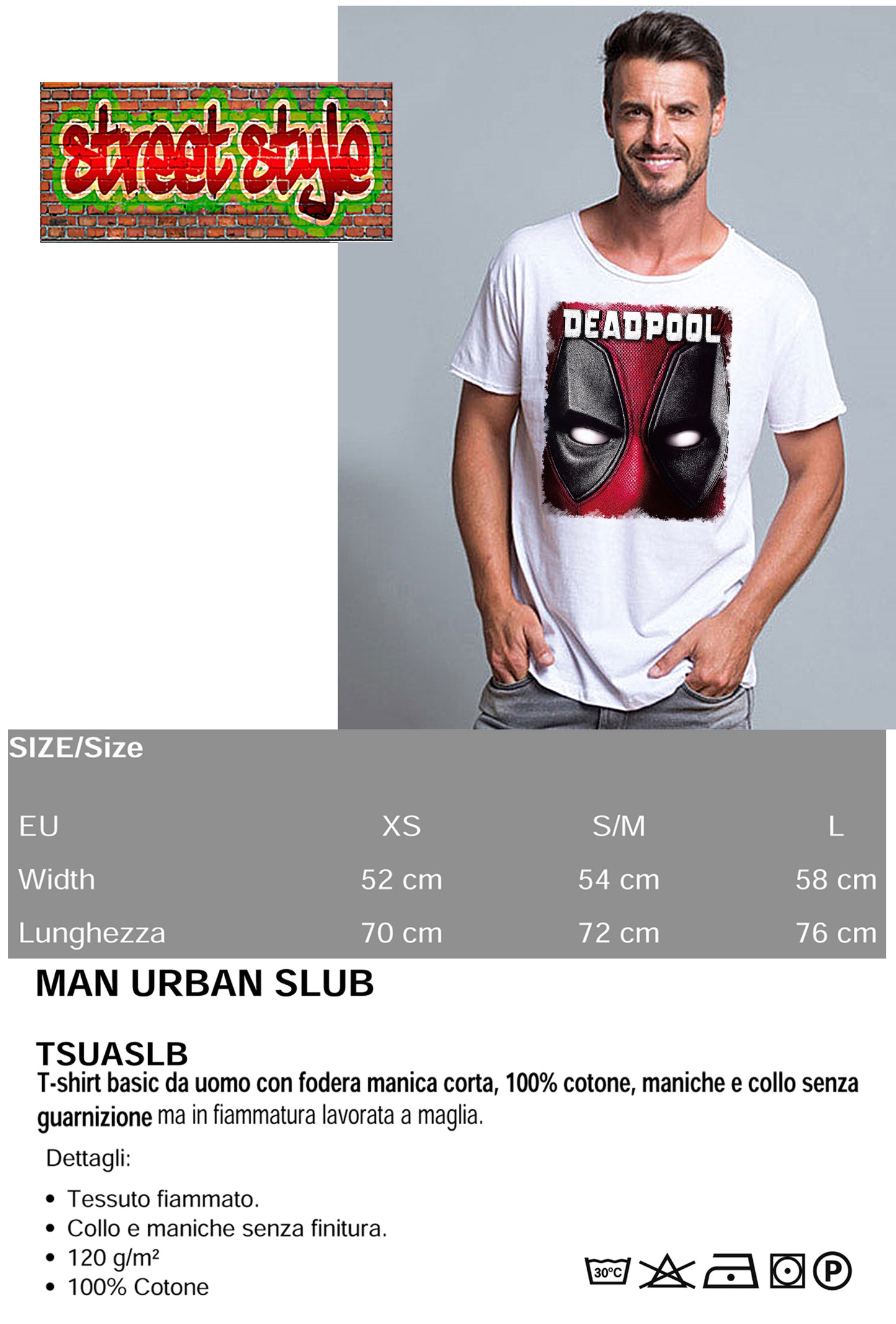 Deapool Mask Film Cinema 2059-3 T-shirt Urban Slub Men Uomo 100% Cotone Fiammato JK