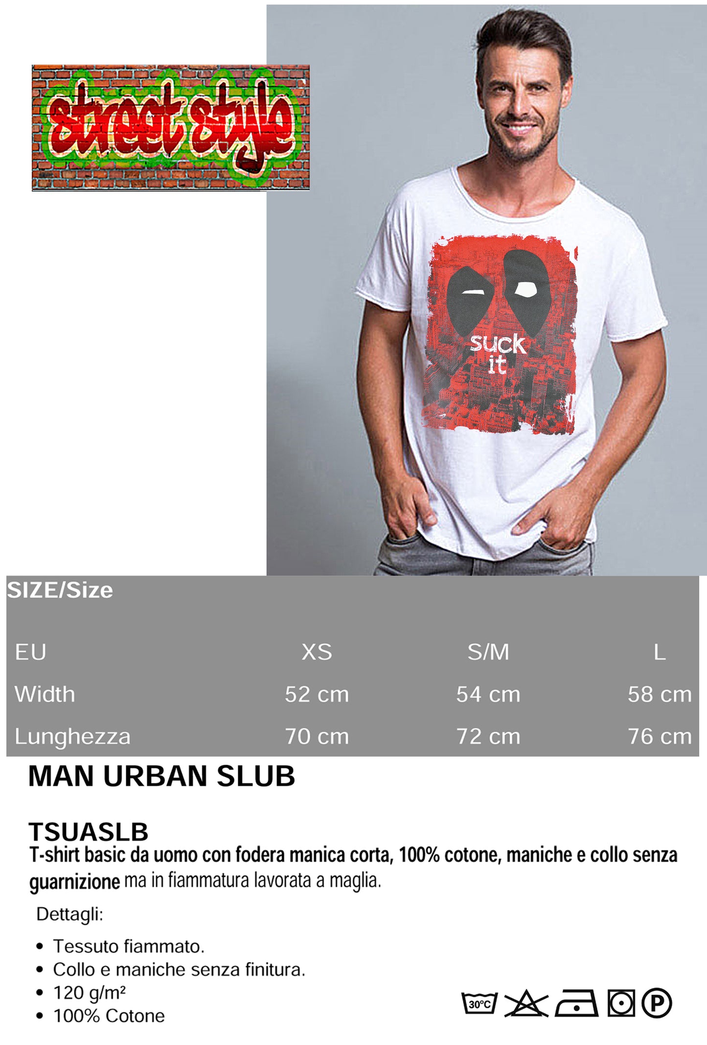 Deapool Suck IT Film Cinema 2059-1 T-shirt Urban Slub Men Uomo 100% Cotone Fiammato JK